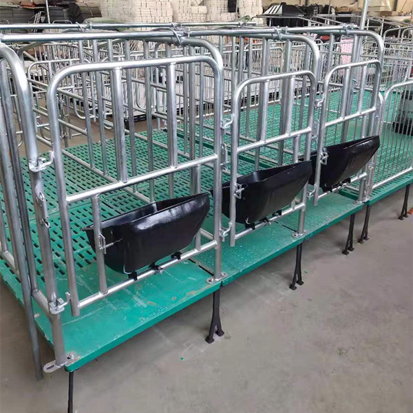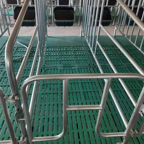 母豬高床定位欄是為懷孕母豬產(chǎn)床設(shè)計(jì)的圍欄,每套定位欄可以供10頭母豬使用,也可以連體安裝,母豬定位欄配帶加厚鋼板食槽,也可以換不銹鋼食槽,但是需要補(bǔ)差價(jià),母豬高床定位欄,下面使用復(fù)合材質(zhì)漏糞板,前面使用半漏式,防止母豬吃飼料的時(shí)候掉在地上浪費(fèi),后面使用全漏式,方便母豬漏糞,下面使用鑄鐵腿子,四孔腿在中間一排,兩孔腿子分別在前面一排和后面一排,整體安裝方便簡(jiǎn)單,定位欄因?yàn)榭勺龅蕉〞r(shí)定量、占用空間小和便于管理受到大多數(shù)豬場(chǎng)的認(rèn)可。由于長(zhǎng)期的不正確選育,外來種豬的母性被降低,在其活動(dòng)過程中很容易壓死仔豬。為了降低了母豬壓死仔豬的可能性,現(xiàn)在大多數(shù)豬場(chǎng)采用定位欄限制了母豬的運(yùn)動(dòng)。采用定位欄,不但母豬發(fā)生褥瘡和肩部潰瘍的可能性進(jìn)一步加大,同時(shí),也降低了仔豬對(duì)母豬的繼承免疫。