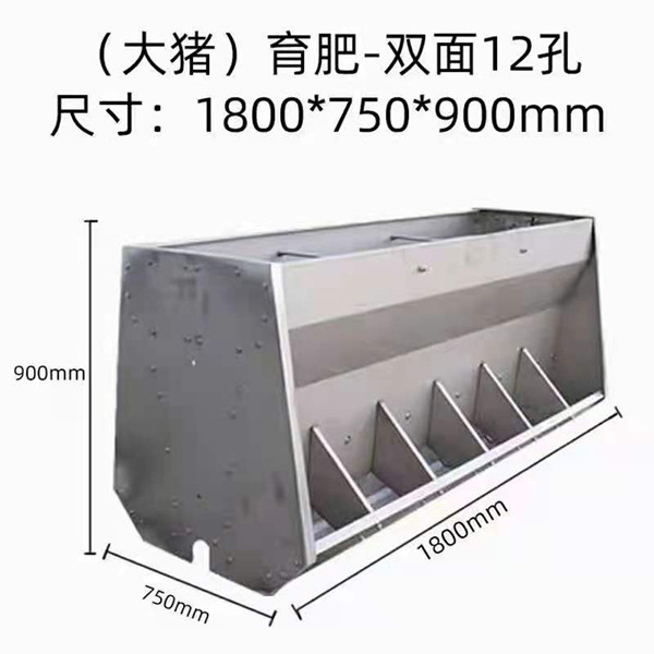 豬用不銹鋼雙面食槽結(jié)構(gòu)合理、不易蓬料、飼料桶儲(chǔ)料容量大、外型美觀、堅(jiān)固耐用,防腐蝕好、壽命長、好清洗、不易老化、節(jié)省人力,可大幅節(jié)約養(yǎng)殖場(chǎng)飼料浪費(fèi)和飼養(yǎng)員勞動(dòng)強(qiáng)度、縮短豬只存欄時(shí)間,增加養(yǎng)殖效益。因此是規(guī)范化養(yǎng)殖戶的好產(chǎn)品。 世昌養(yǎng)豬設(shè)備豬用不銹鋼雙面食槽的設(shè)計(jì)理念: 進(jìn)口不繡鋼材質(zhì):塑鋼雙面食槽有10孔自動(dòng)料槽,可飼喂保育床兩欄,豬用不銹鋼雙面食槽外觀:表面光滑,無死角,不存料,清洗拆裝糞便 獨(dú)特下料模式:出料口大小可隨時(shí)控制調(diào)節(jié),減少飼料的浪費(fèi) 一機(jī)兩用:節(jié)約成本是現(xiàn)代大型養(yǎng)豬企業(yè)的好幫手, 使用壽命長:整體壽命可達(dá)到20年以上